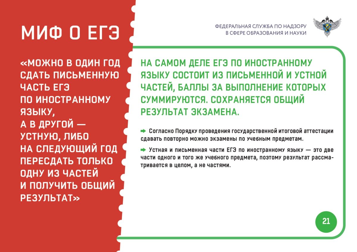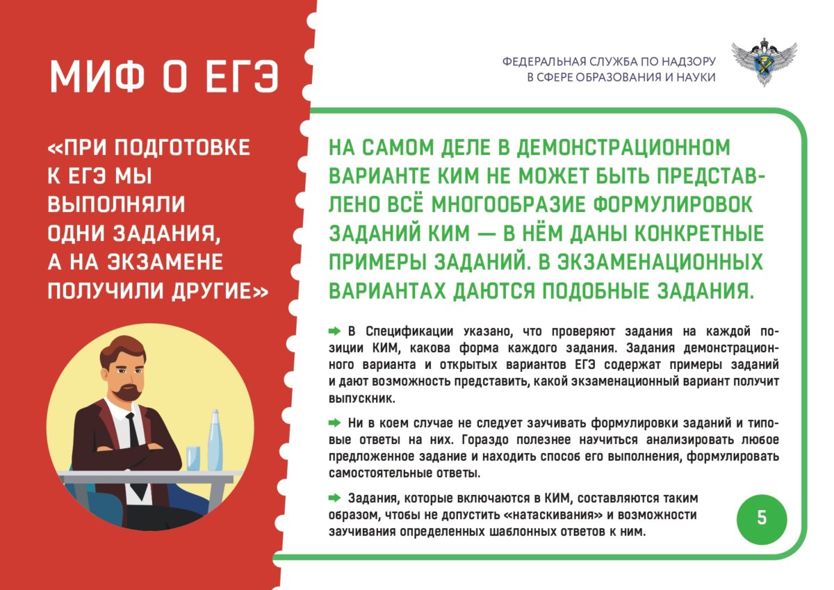 22 самых распространённых заблуждения о государственной аттестации в 11 классе – в информационных карточках, подготовленных Рособрнадзором.